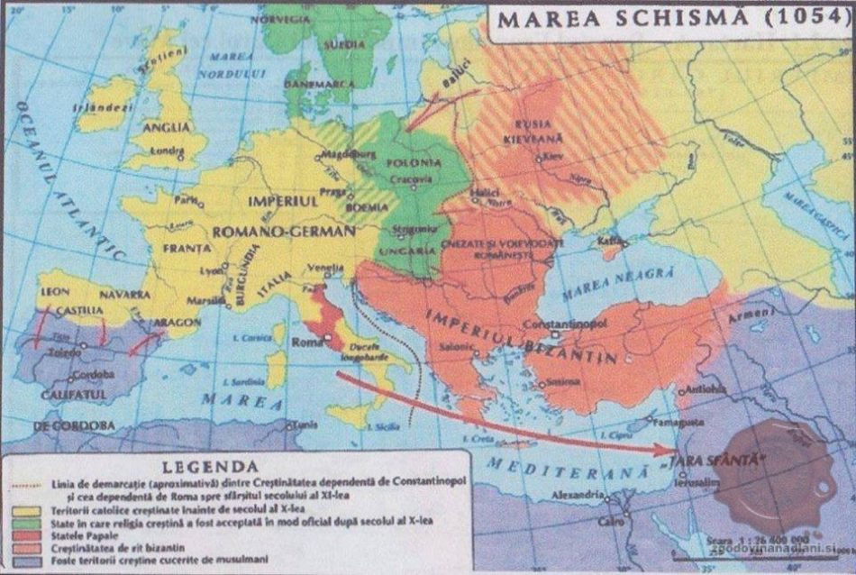 16. julija leta 1054 je papeški odposlanec kardinal Humbert v Konstantinoplu izobčil patriarha Mihaela Ceralariusa in njegove somišljenike. Štiri dni pozneje je bizantinski patriarh izobčil vse tri papeške odposlance vključno z Humbertom.
