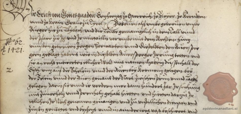 19. avgusta leta 1421 je habsburški vladar in politik Ernest Železni izdal listino, ki je potrjevala stoletno pravico srednjeveške Ljubljane do mestne gmajne in gozdov. Srednjeveška Ljubljana je vse do 16. stoletja, ko je leta 1511 izbruhnil požar, dajala podobo revnega lesenega mesta pod vznožjem grajskega griča. Zidanih hiš je bilo malo, razen grajske utrdbe… Nadaljuj z branjem