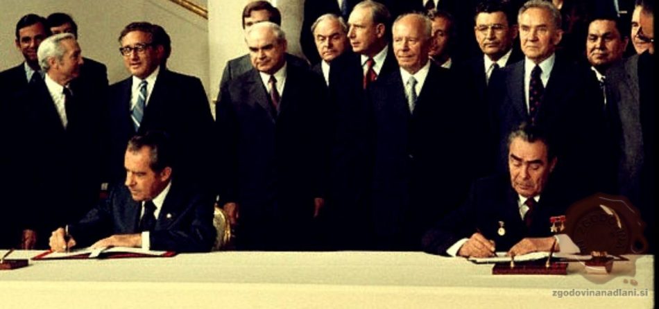 26. maja leta 1972 sta v Moskvi generalni sekretar komunistične partije Sovjetske zveze Leonid Brežnjev in ameriški predsednik Richard Nixon podpisala sporazum SALT I. (Strategic Arms Limitation Talks). V veljavo je stopil 3. oktobra istega leta. Bil je eden prvih poskusov omejevanja strateške jedrske oborožitve in medcelinskih balističnih raket. Pogajanja med obema supersilama so se začela novembra leta 1969, na številnih sestankih v Helsinkih in na Dunaju so  se diplomati in vojaški strokovnjaki dogovarjali o podrobnostih sporazuma. Leonid Brežnjev in novi ameriški predsednik Jimmy Carter sta nato še junija 1979 podpisala sporazum SALT II. Sedemdeseta leta prejšnjega stoletja v obdobju hladne vojne imenujemo kot obdobje detanta – čas popuščanja napetosti med obema supersilama in vojaškima blokoma. Tega obdobja je bilo konec decembra 1979 z začetkom vojne v Afganistanu.