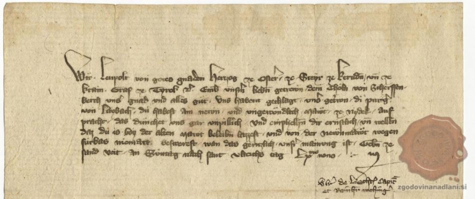 Listina iz Zgodovinskega arhiva Ljubljana (FOTO: arnes.si)
