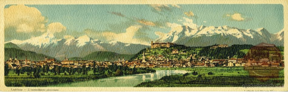 Panorama Ljubljane. V ozadju so Kamniško-Savinjske Alpe.
