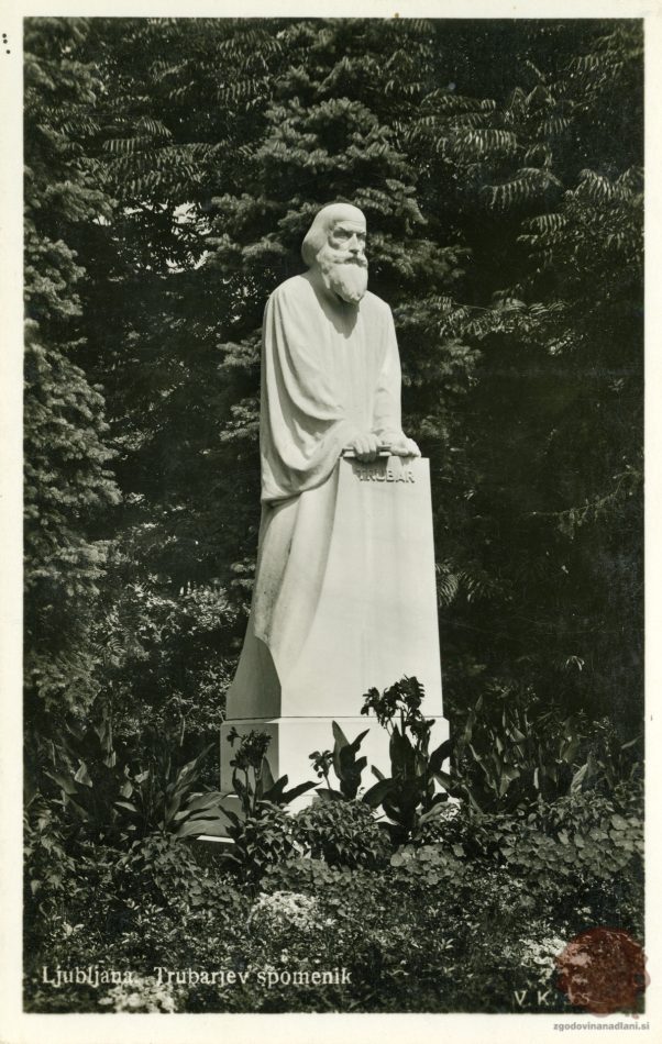 Spomenik slovenskemu Martinu Luthru – Primožu Trubarju pri vhodu v park Tivoli.